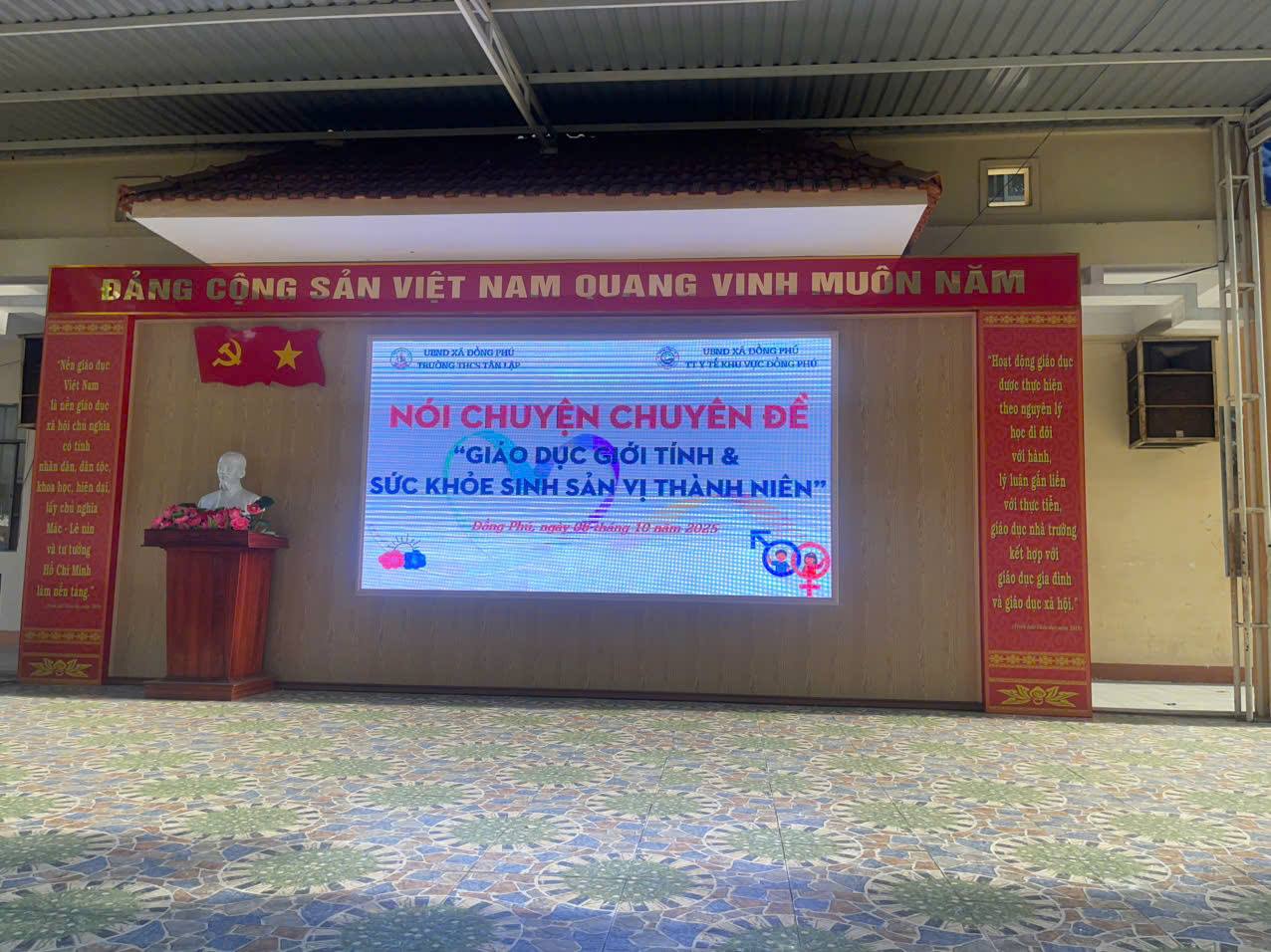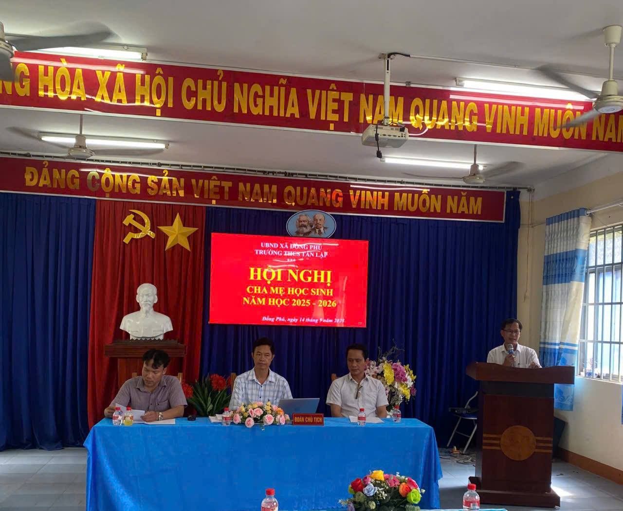 Hòa chung với khí thế cả nước chào mừng Lễ diễu binh, diễu hành kỷ niệm 80 năm Cách mạng Tháng Tám và Quốc khánh 02/9/2025 của nước Cộng hòa xã hội chủ nghĩa Việt Nam thành công tốt đẹp; 80 năm ngày thành lập Bộ Quốc gia Giáo dục nay là Bộ Giáo dục và Đào tạo (28/8/1945 – 28/8/2025). Hôm nay, ngày 05/9/2025, cùng trong không khí tưng bừng, phấn khởi của “Ngày hội toàn dân đưa trẻ đến trường”, thầy và trò trường THCS Tân Lập, xã Đồng Phú, tỉnh Đồng Nai đã long trọng tổ chức Lễ Khai giảng năm học mới, năm học 2025 – 2026.